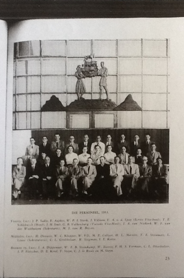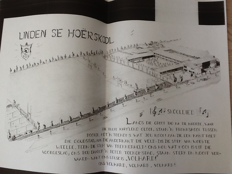I challenged the team in making sure that Linden truly runs through our veins, and what better way than through the use of photos. So I popped in to our local High School – Hoërskool Linden – after receiving the most amazing welcome from all the office ladies (Dankie tannies) – to get some photos that represent the history of Linden. In a few minutes the table was stacked with year books ranging from 1953 (the year the school was opened) to 2011. We were greeted with pages and pages of stories and photos of the first hockey, rugby, cadette, netball and athletics teams – and the best one of all – the first staff complement – all kitted out in their typical 1950’s attire of big dark spectacles and tailored suits (men and woman). I was once again reminded about an era where discipline and pride for your school and country was everything. You will notice that the school anthem has reference to the peach orchards in the area.